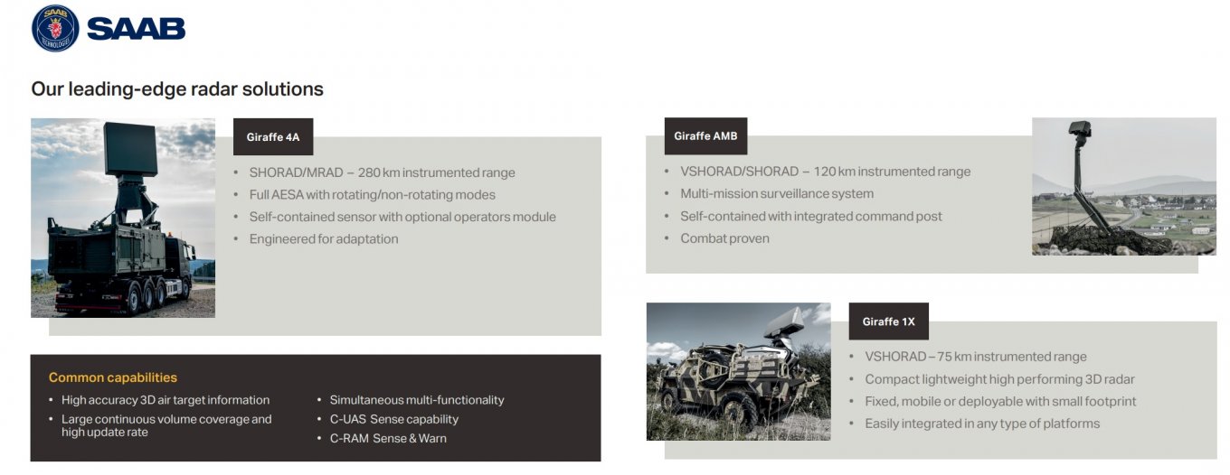 W imieniu Defense Express pragniemy zauważyć, że pomimo braku nazw radarów i systemów obrony powietrznej Saaba, dość łatwo zgadnąć, o czym mówimy. W końcu oferta producenta tych systemów nie jest aż tak szeroka. W szczególności, z dużym prawdopodobieństwem mówimy o radarach z rodziny Giraffe, które od dawna są dostarczane na Ukrainę.