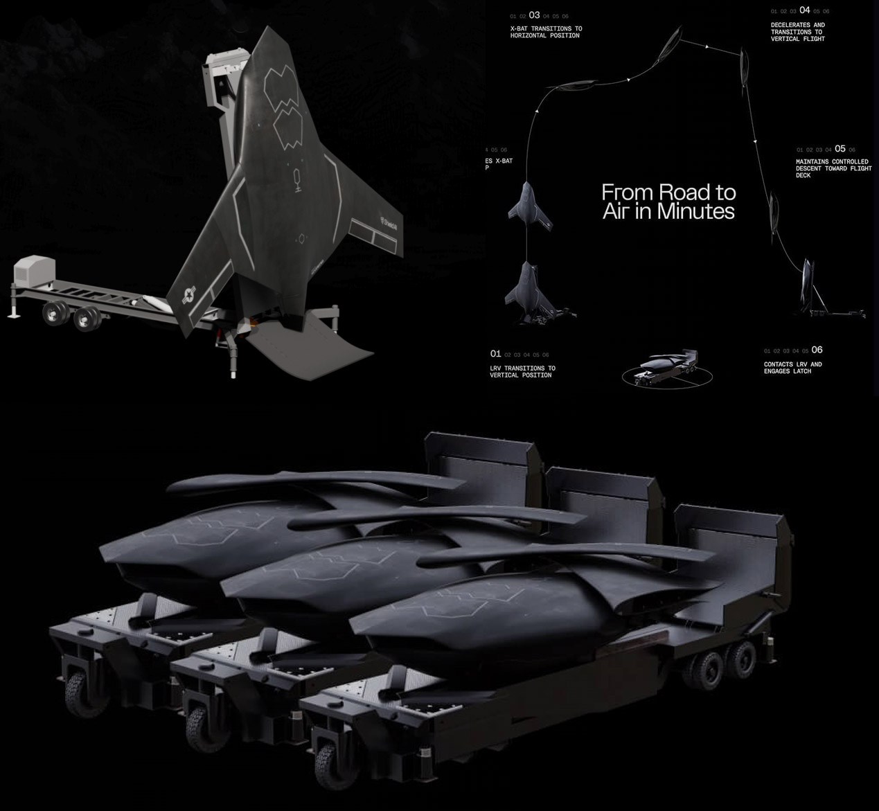 Zwiastun z dronem myśliwskim X-Bat i procesem startu i lądowania